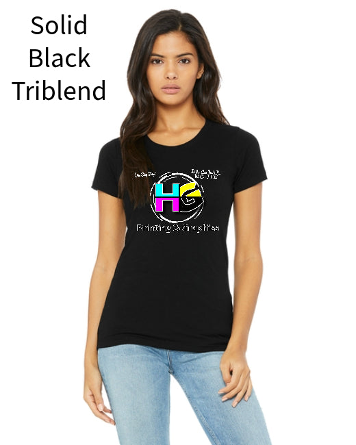 - You won't want to take off this best-selling tee, this womens triblend t shirt features a uniquely soft triblend fabrication, modern feminine fit, scoop neck and short sleeves. Offered in a rainbow of colors.
